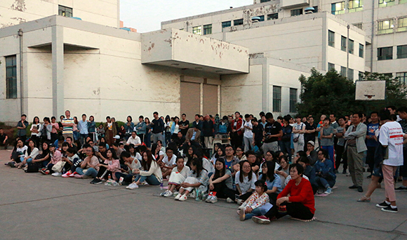 “所有的日子,所有的日子都来吧,让我们编织你们,用青春的金线,和幸福的璎珞,编织你们”,金沙990活动大厅2016级播音与主持艺术系学生陈英格、张祖伦现场朗诵王蒙诗歌《青春万岁》,以九零后的触角,去感悟那个时代的青春气息。 偌大的篮球场上,席地而坐的同学们,驻足观看的教职工,几代人带着儿时的记忆,观看老电影里“时代的青春”,也喊出当代青年自己的青春万岁!