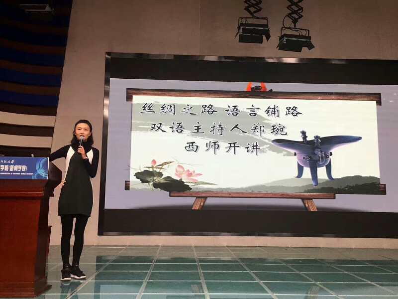 随后,郑琬老师从语音面貌,语速,串场方式等很多方面做了细致的分享,提出来了比如“无错原则”和“万能拆分公式”等很多新颖的观点。作为连续五年“敦煌行·丝绸之路国际旅游节”和连续七年“中国兰州国际马拉松赛”的双语主持人,郑琬老师积累了很多实战经验,在实例和理论相结合的分享下,同学们听得津津有味,也受益匪浅。