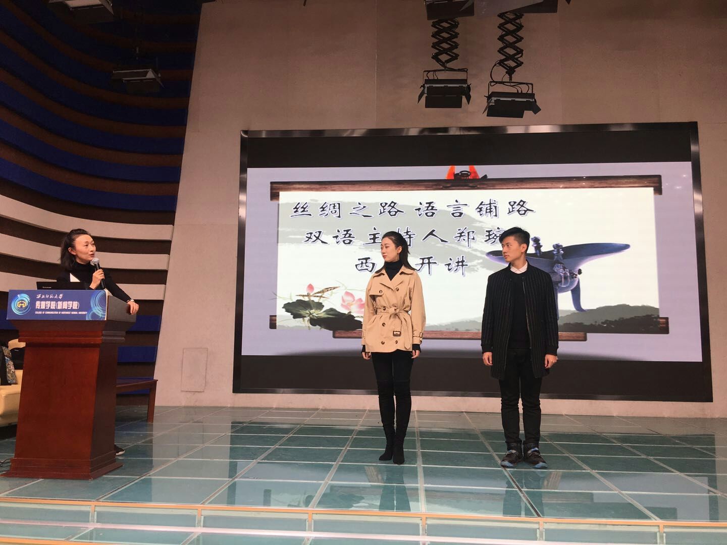 作为甘肃双语主持第一人,郑琬老师在分享中也就英语学习给同学们提了很多建议,为同学们开拓了眼界,带来了很多新方法,新思路。李丽老师表示“一带一路,语言铺路”,播音学子应该夯实英语基础,为未来的发展铺路。