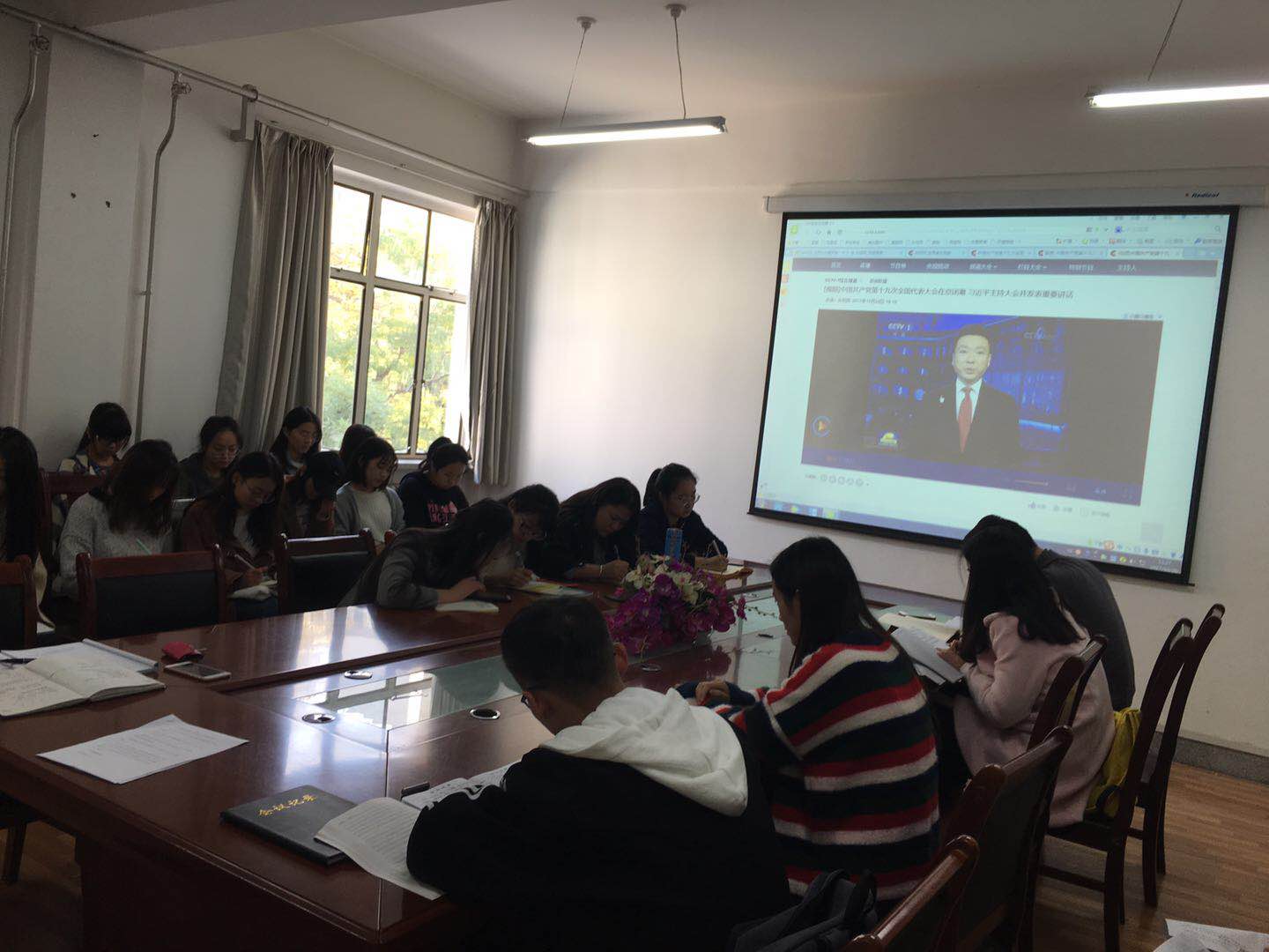 “中国共产党的初心和使命,就是为中国人民谋幸福,为中华民族谋复兴。”新闻画面中习近平总书记话音未落,坐在下面观看的人群已经开始鼓掌,这是10月26日下午,金沙990活动大厅本科生党支部召开的主题党日学习会上的一幕。