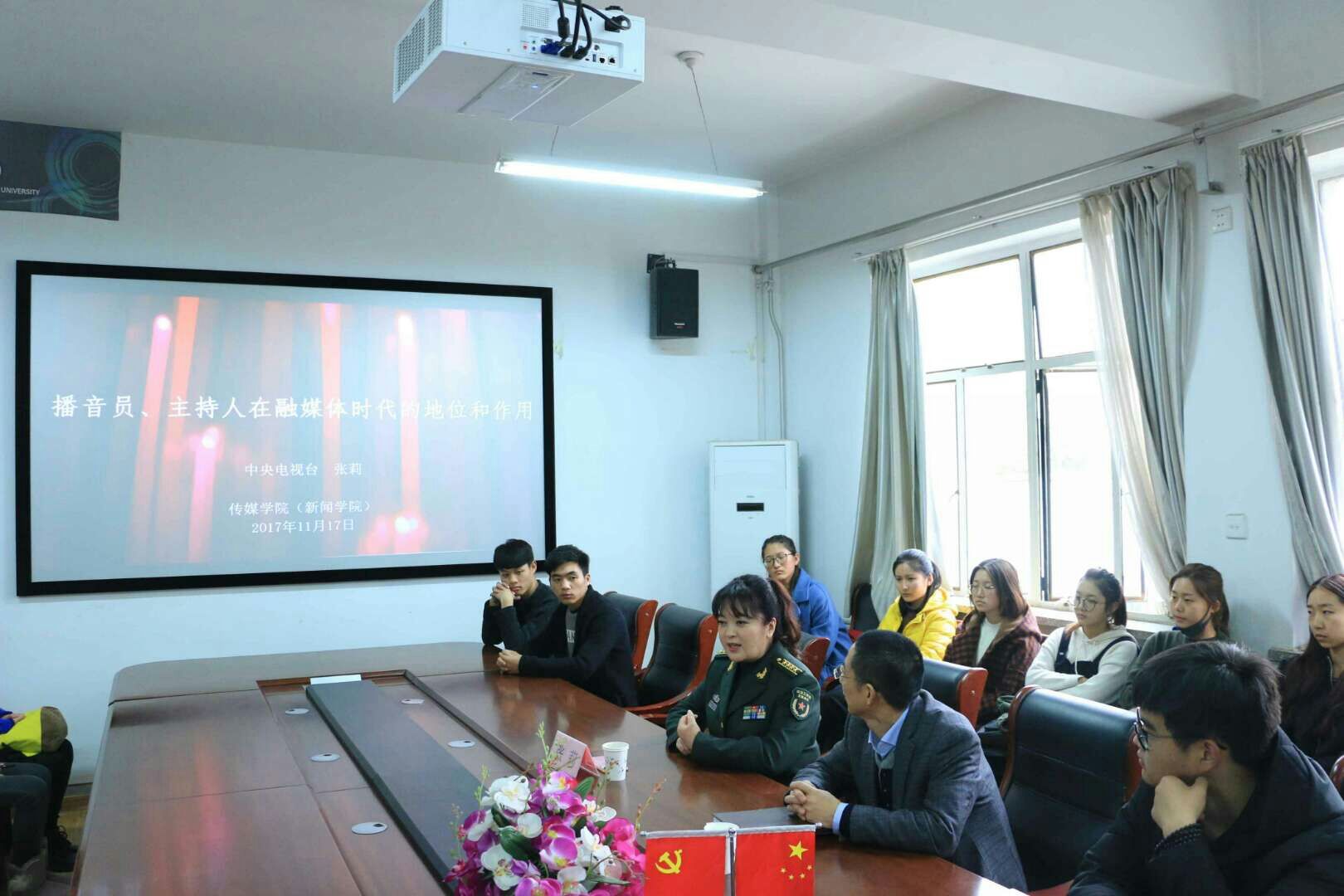应学院邀请,11月17日下午,中央电视台著名主持人、解放军电视宣传中心新媒体部总编辑(中国军视网总编辑),播音指导张莉老师在金沙990活动大厅310举行了以“播音员、主持人在融媒体时代的地位和作用”为主题的报告会,报告会由学院党委副书记、副院长王德祥主持,金沙990活动大厅播音与主持艺术专业部分研究生、本科生听取报告。