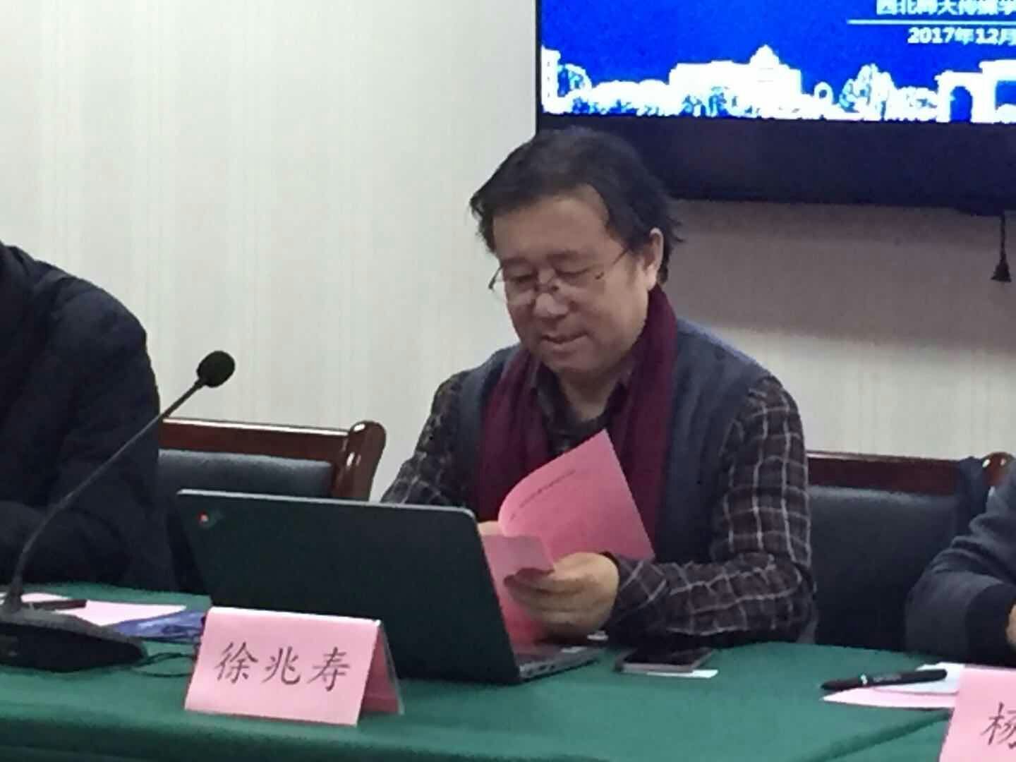 西北师大金沙990活动大厅院长、博士生导师徐兆寿教授致辞。他谈到,“一带一路”的建设无论是对于中国还是外国来说,都是一种新的思想、新的观念、新的实践、新的方法论、新的世界观。我们应当站中国传统文化的立场上,对强势的欧洲中心主义文化发出抗辩,需要“我们重新站立在故乡的大地上,开始发出属于我们自己的声音”,这也就是“一带一路”的声音。他说,我们急需调整我们的精神向度,唤醒我们沉睡的传统文化。一方面,从国内发展的角度来看,要深刻体悟“一带”与“一路”的内在关系,使“一路”带动“一带”经济发展,同时,“一带”上深厚的传统文化又会反哺“一路”,重新建立文化自信;另一方面,“一带一路”是一种新的全球观念,是重新构建新的文化观、历史观和价值观的一种立场、方法和思想。我们长期生活在陆上丝绸之路上,上海的学者则长期生活在海上丝绸之路上,我们的对话,从某种意义上就是“一带”与“一路”的有机互动。