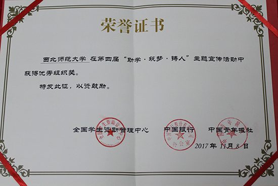 据悉,全国第四届“助学•筑梦•铸人”主题征文活动由教育部全国学生资助管理中心、中国银行和中国青年报社联合举办,共评选出一等奖10名、二等奖50名、三等奖150名,优秀组织奖100名。活动以“中国梦•谁的青春不奋斗”为主题,旨在大力宣传国家资助政策及助学工作成效,鼓励受助学生奋发向上、砥砺自强,进而在广大学生中间传递自尊自强、感恩奉献的正确价值观。