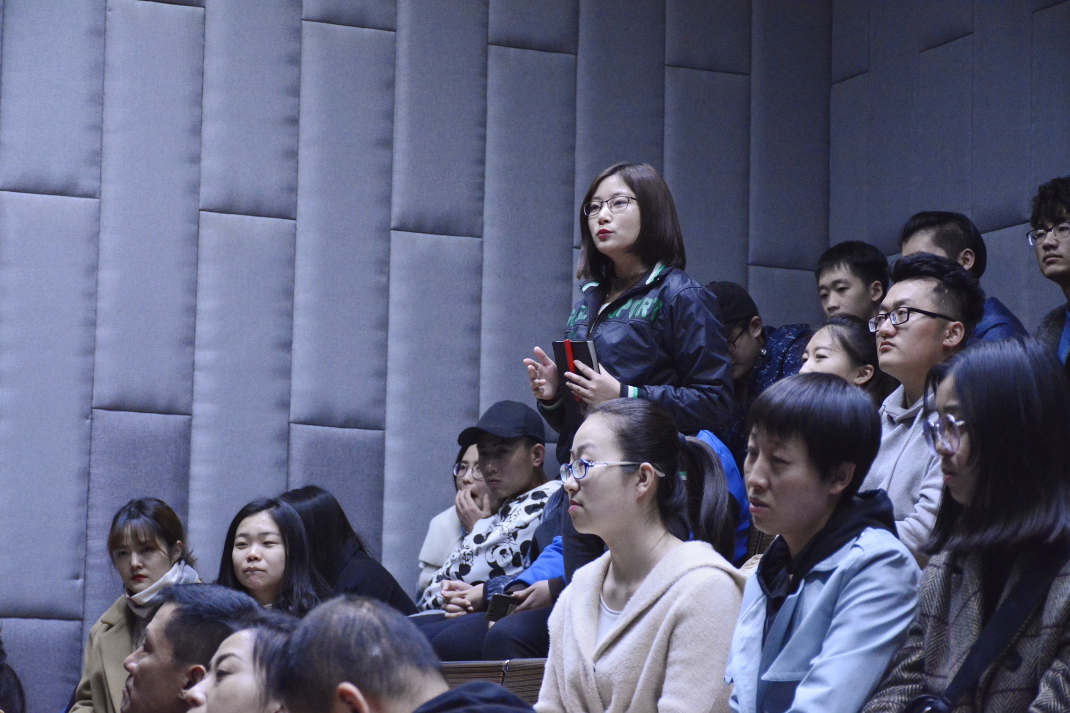 下午2:20,金沙990活动大厅演播厅已座无虚席,大家静候影片放映。
