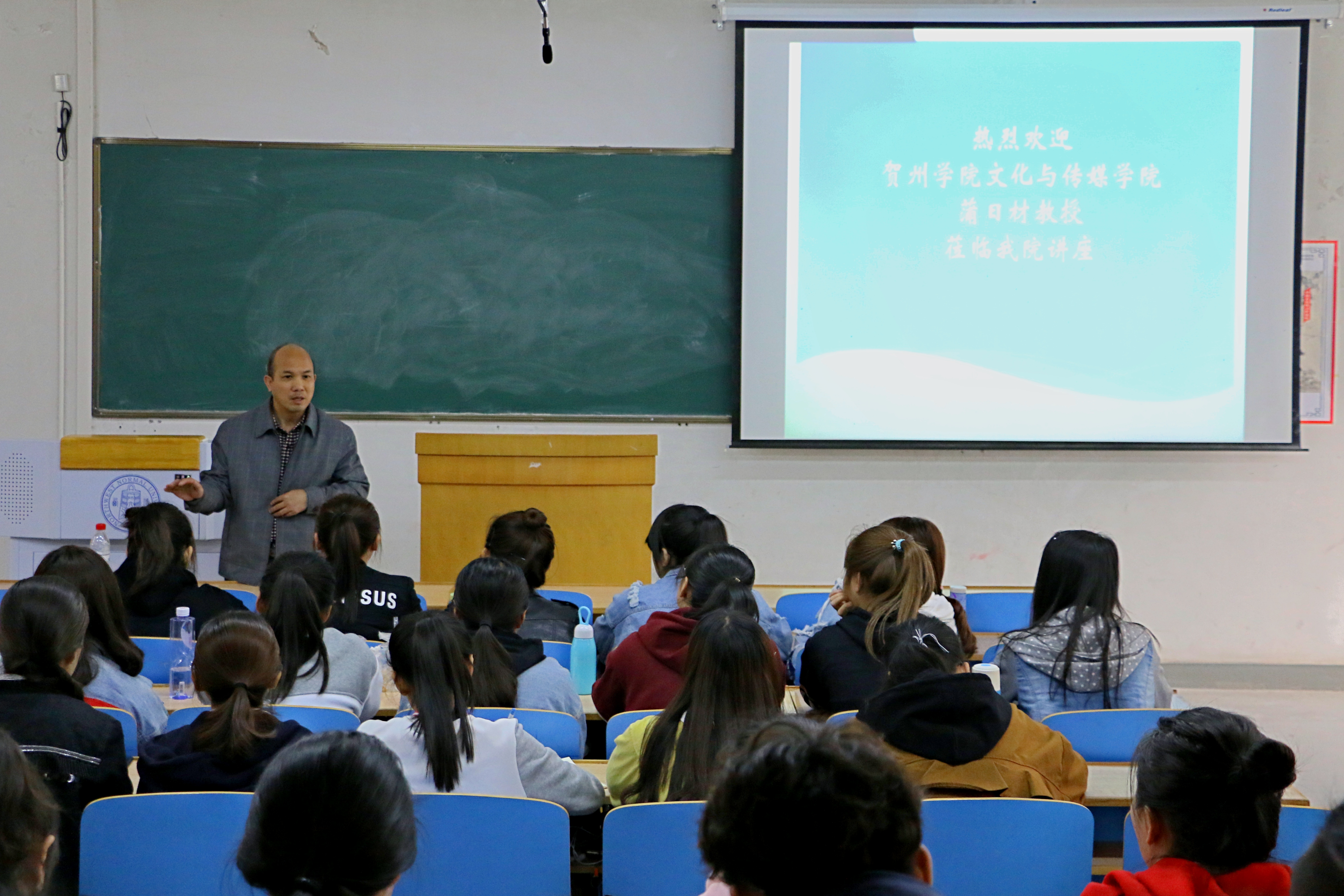 3月16日,贺州学院文化与金沙990活动大厅蒲日材教授莅临我院为学院师生带来一场题为《聆听四大名著改编影视作品》的讲座,此次讲座由我院教师侯怡主持,我院部分师生到场聆听了讲座。