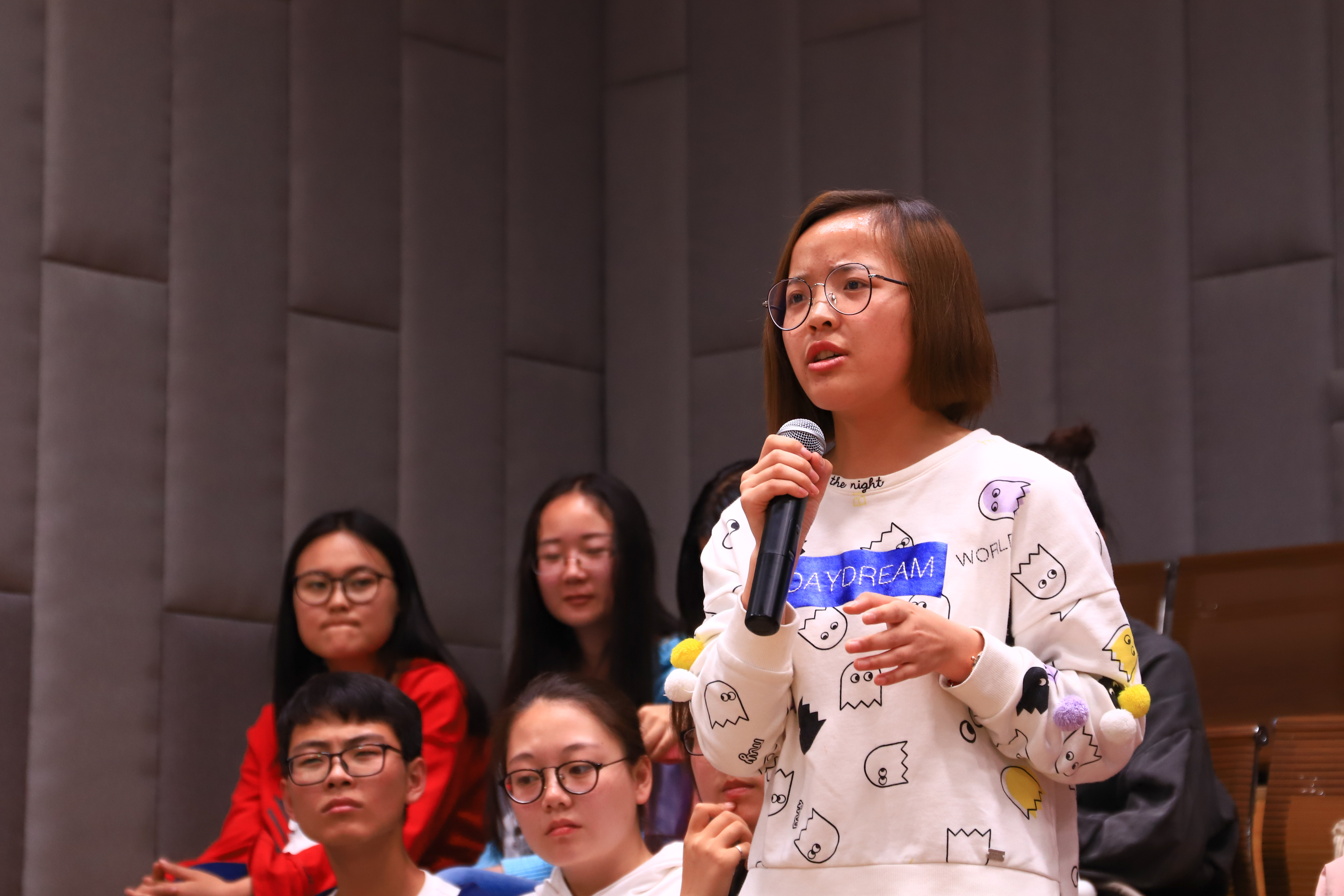 随后,赵丽瑾老师主持了《南京南》映后沙龙交流环节,现场气氛热烈,同学们积极发言提问、讨论。当有同学问到应如何看待片中李浩的边缘人物形象时,李林老师认为我们不应该片面的看待边缘人物局外人的身份;马成鸣老师观影后则对李浩在宿舍被边缘的现象提出了从辅导员角度的思考;张哲老师认为该片值得同学们学习,但在剪辑上可以压缩,显得更加紧凑;冯晓临老师认为我们在拍摄电影时应当注意怎么讲好故事,先考虑内容,再讨论形式,不要试图在一个电影中表达太多东西。