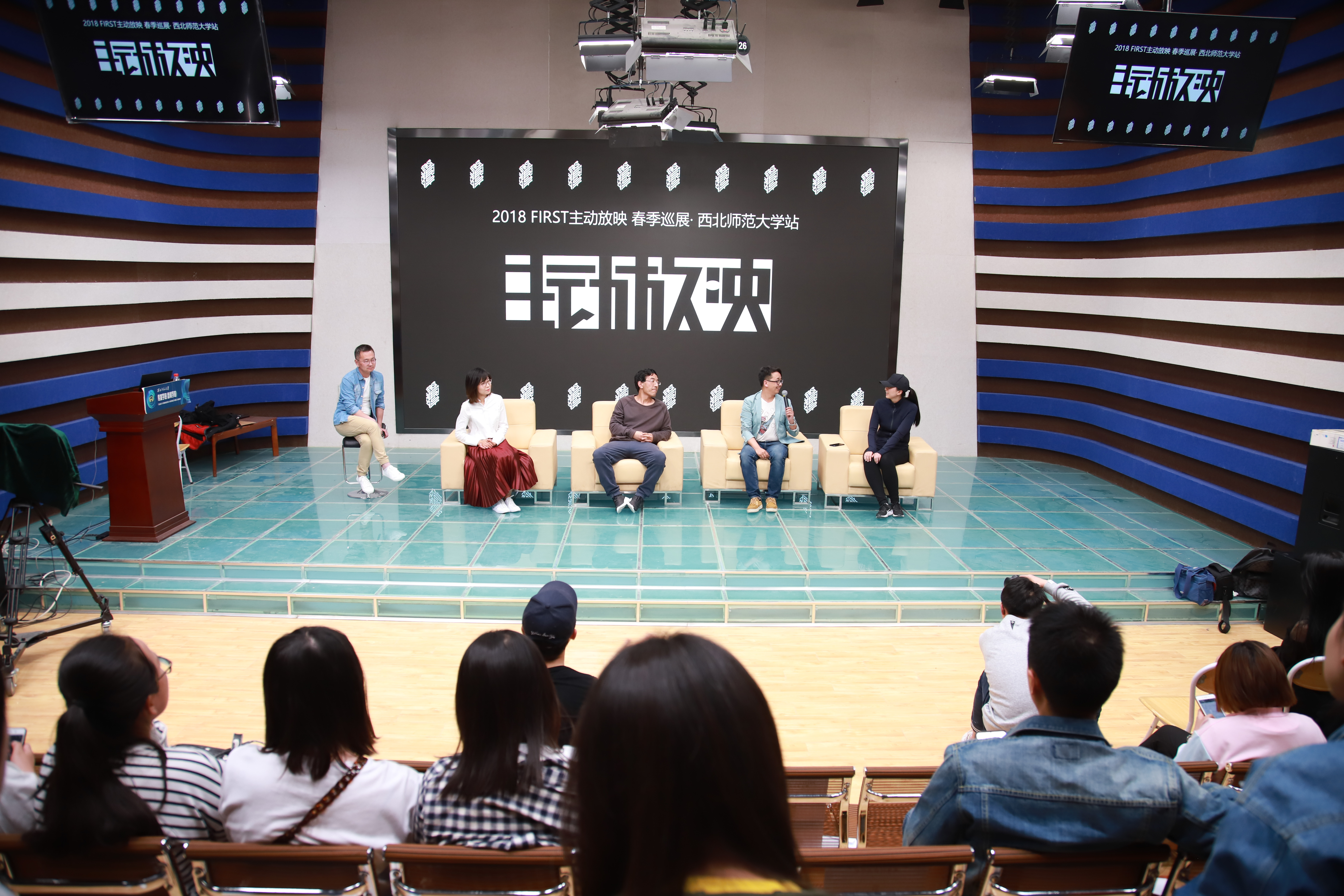 2018年5月3日晚上7点,金沙990活动大厅(新闻学院)八部半放映室再次携手FIRST青年电影展,在金沙990活动大厅演播厅举行2018FIRST主动放映·春季巡展·金沙990活动大厅站站主动放映活动。学院广播电视编导系主任冯晓临、播音与主持系主任李丽以及马成鸣、赵丽瑾、李林、张哲(兰州交通大学)、团委书记赵洁老师也到场参加,并与同学们讨论交流。我院八部半放映室由赵丽瑾老师主持,本次巡展由我院学生彭泉锦策展,吕津豫、穆倩负责活动宣传,崔续明、杨泽凯、安英豪负责现场统筹。本次活动除本校学生积极参与外,还吸引了来自兰州大学、兰州交通大学、兰州城市学院等多所高校的近百余名师生参加了此次活动。