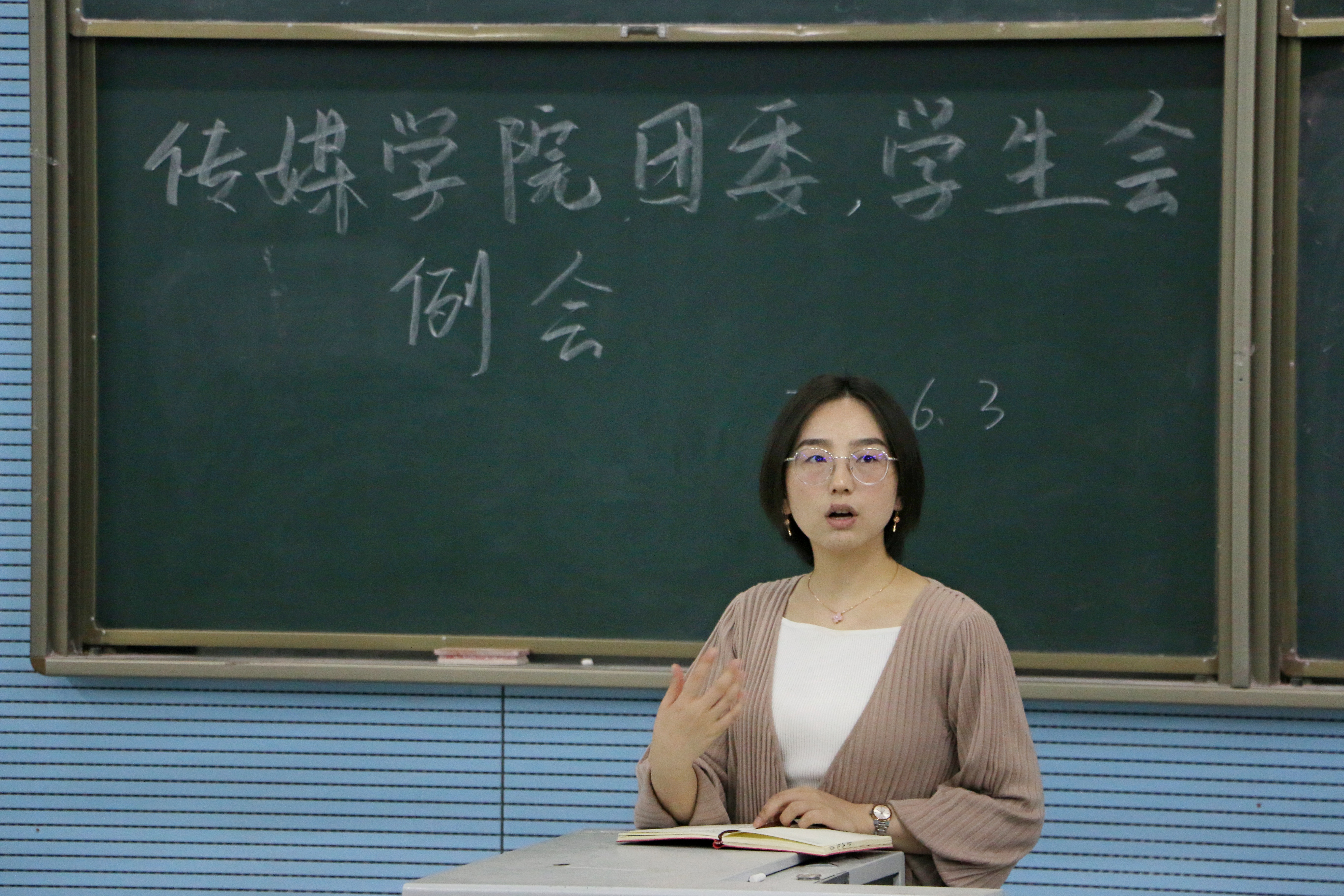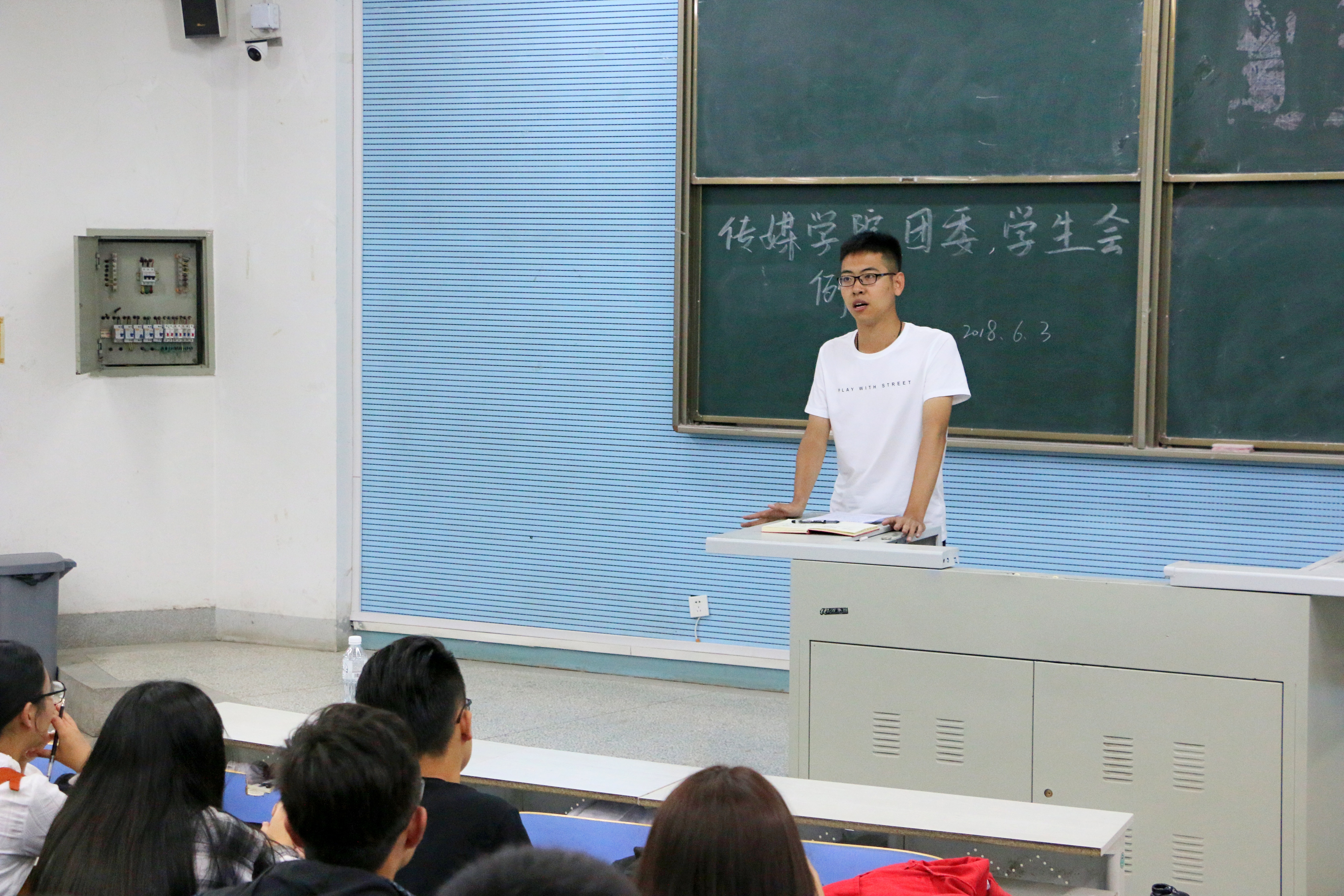 2018年6月3日晚7点,金沙990活动大厅(新闻学院)于教学10号楼116教室召开团委学生会例会在举办。学院实验室中心主任张军、团委书记赵洁、团委学生会全体干部以及各班班长团支书参加会议。