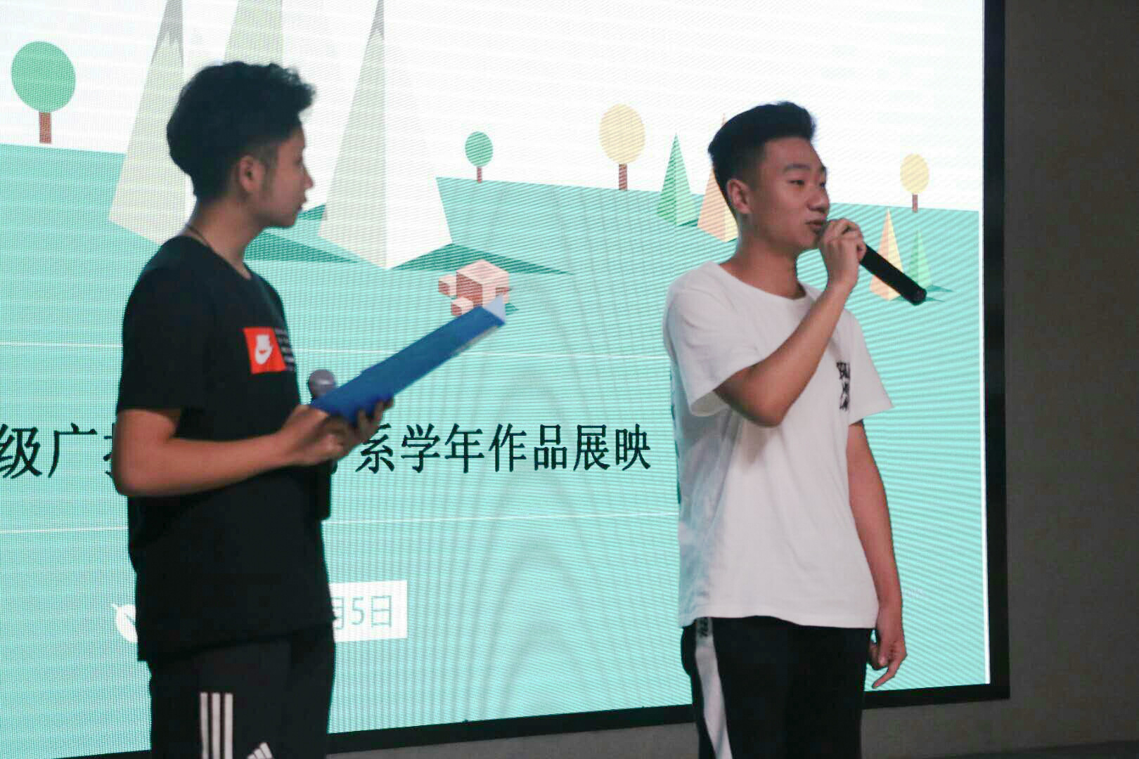 7月5日下午2点半,2015级广播电视编导专业学年作品展映活动于金沙990活动大厅演播厅举行,广播电视编导系主任冯晓临、李燕临和赵丽瑾老师,以及2015级广播电视编导专业学生参加本次活动。