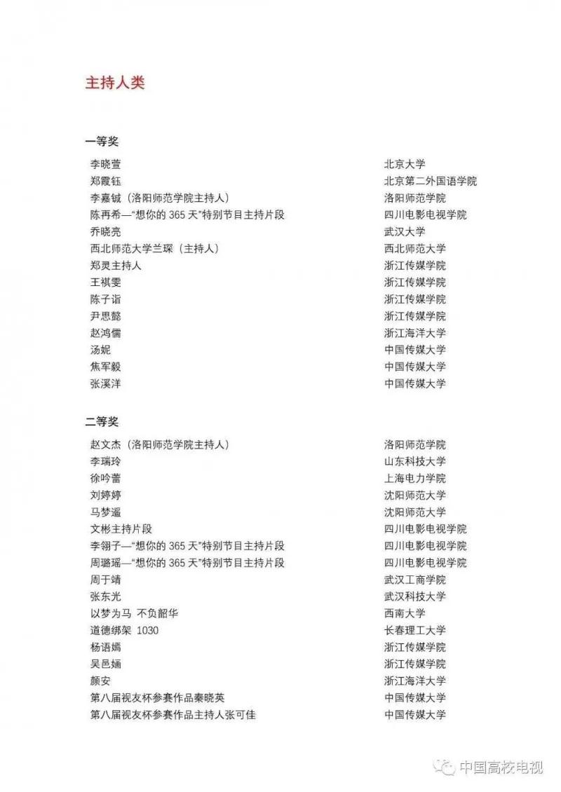 本次评奖分新闻、专题、纪录片、教学、综艺、形象、微电影、主持人、论文等九个类别,共收到来自全国100所高校报送的888部作品。