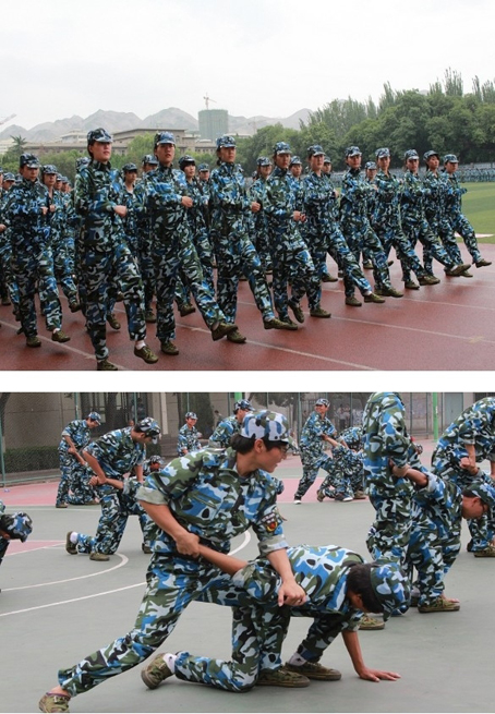 学院学生按部队建制划分为一营第四连,下设三个排。在训练过程中,学生在部队教官的指挥下,训练了队列、搏击拳、手操等科目。女生排还单独编成方队参加了汇报演出分列式表演。