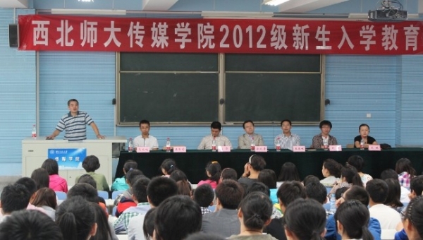 王德祥副书记首先介绍我院各专业情况,对来自12个省、6个民族的180多名本科生和19名硕士研究生能够齐聚金沙990活动大厅大家庭表示欢迎。播音与主持艺术班夏梦伊同学代表新生发言,表达同学们参与高考的心路历程之余,也祝福了西北师大110周年生日快乐。孟子为副教授代表全院教师向新同学们表示了欢迎。他强调传媒学子要注重全面发展,学会公正、客观地观察与报道新闻事件,具有敢于批判现实的精神,努力成为一个“杂家”,不要求“精”,但一定要注重“博”,努力提高写作能力,扎实文字功底。徐副院长以“理想”、“爱情”、“学习”、“大学”四个关键词展开即兴演讲,着重从 “学会做人”与“学习技能”两方面,强调学会做人是大学生最基本的素质,而技能是对素质的进一步完善。刘副院长劝诫学生,作为传媒人应具有悲天悯人的情怀,要积极投身社会实践,了解社会,诙谐幽默的语言轻松自然、引人深思。