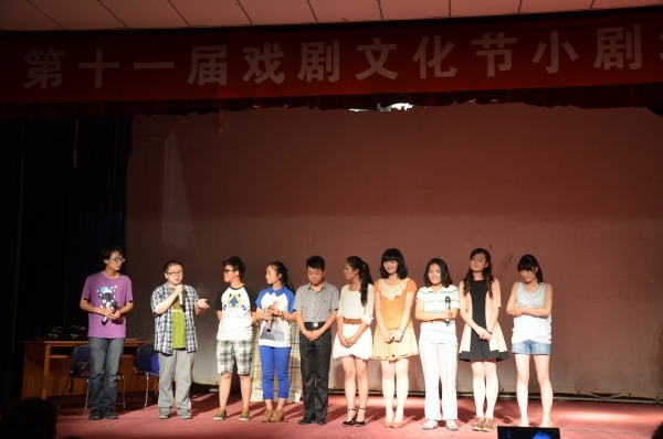 日前,我校第十一届戏剧文化节正在火热进行。22日晚,由我院2011级新闻学1班张畅导演,2012级播音班、新闻班同学联袂主演的话剧《男生禁入》代表金沙990活动大厅在大学生活动中心202室隆重上演。这是我院自成立以来,首次亮相话剧节。