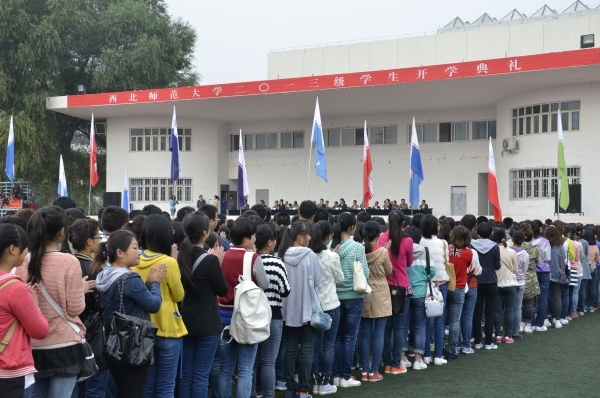 9月5日上午,金沙990活动大厅2013级新生开学典礼在西操场举行,我院播音与主持艺术专业新生王媛代表全校新生发言。
