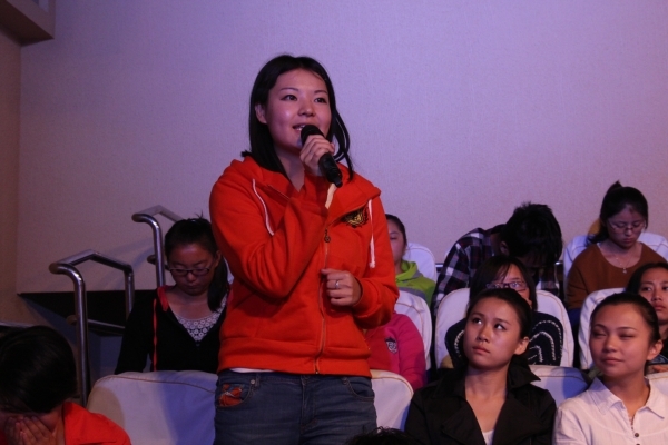 传媒学子在仪式上深情地朗诵了自创诗歌《我的中国梦》,受到了张腾岳老师的称赞。仪式之后,原中国国际广播电台台长、中国广播电视协会播音主持委员会会长李丹,中央电视台国际频道主持人张腾岳,中央人民广播电台经济之声主持人王强与兰州市广播电视总台主持人播音员及金沙990活动大厅播音与主持艺术专业学生进行了互动交流。