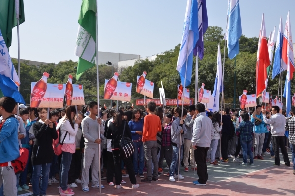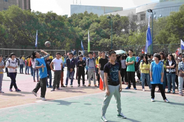 10月10日中午12时,由体委、学生会主办的2013年“师大杯”学生男女混合排球赛隆重开幕。金沙990活动大厅排球队队员和各班观众与学校其他23个学院代表队齐聚排球场,参加开幕式。