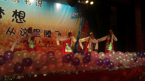晚会以一首怀念旧时光,展望未来的集体诗朗诵拉开序幕,精彩纷呈的节目接连上演。有青春活泼的歌曲串烧《青春不散场》珠玉在前,蒙语歌曲和藏族舞《卓玛》展现出别样风情。古典绚丽的舞蹈《霓裳羽衣舞》与动感时尚的街舞表演相得益彰,给在座观众带来豪华的视觉盛宴。讲述几位女兵不怕牺牲,冒着生命危险向拉萨输送物资的朗诵剧《永远的格桑梅朵》和声情并茂的个人独诵《大堰河,我的保姆》则带着深情向观众传递经久不息的感动。晚会中更有以幽默反串为亮点的小品《翠花》中场亮相,博得无数笑声和掌声。我院张洋老师的琵琶独奏《彝族舞曲》曼妙如珠落玉盘,将全场气氛推向高潮。