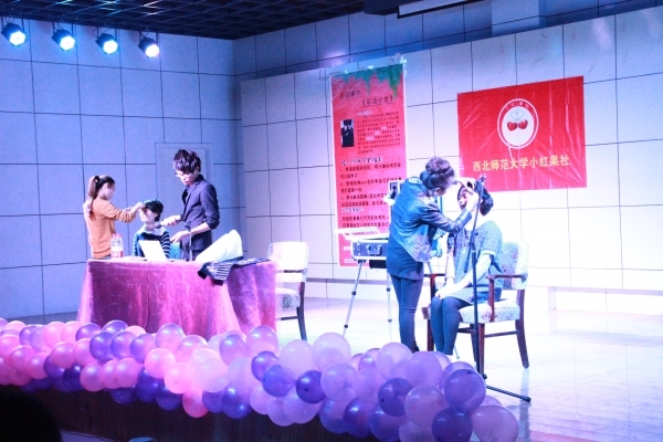 小红果社配合学院团委、学生会为金沙990活动大厅本年度的金秋师生文艺晚会的举办付出了很大的努力,100余名成员也参与了10月14日的晚会,并为社团成立一周年点亮了生日蜡烛。