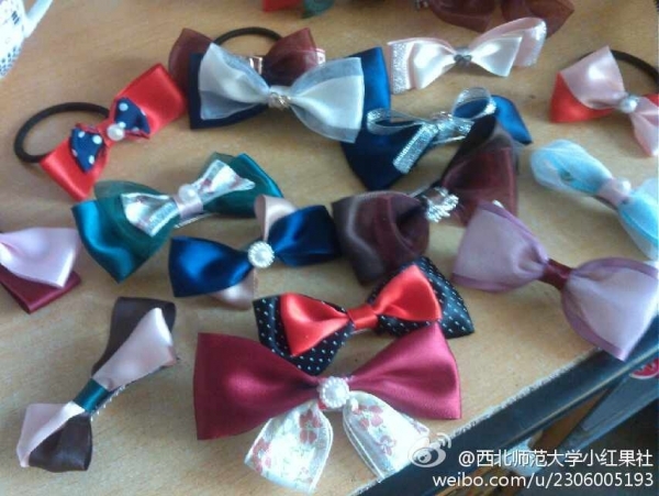 赵唤唤也是个爱好制作手工艺品的姑娘,她任社长的一年里经常组织爱好手工制作和热衷于公益事业的师生与“果果”们进行交流,在制作工艺品、烹饪美食、编发技巧等方面给其爱好者提供了很多指导,还带领社员一起参加健康知识讲座和彩妆沙龙。社员们自发组织自制的发卡和蝴蝶结义卖活动。