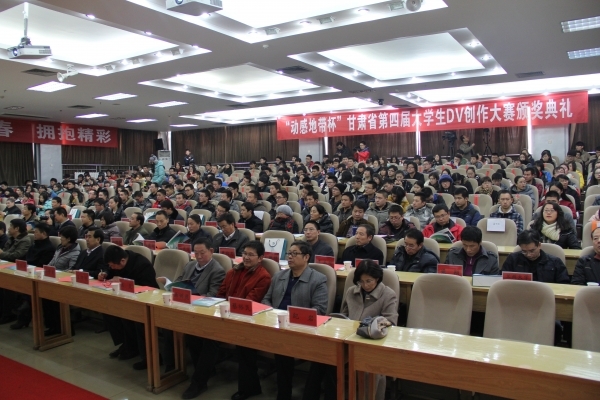 12月28日下午,“动感地带杯”甘肃省第四届大学生DV创作大赛颁奖典礼在西北民族大学举行。甘肃省高校工委副书记陈保平,甘肃省文明办副主任仇颖琦,西北民族大学常务副校长马景泉,中国移动通信集团甘肃有限公司副总经理王延明,甘肃省电教中心主任杨晓健出席典礼并为获奖代表颁奖。全省高校党委宣传部长、相关学院负责人及在兰部分高校师生代表、获奖代表参加典礼。甘肃省高校工委副书记陈保平在典礼上讲了话。
