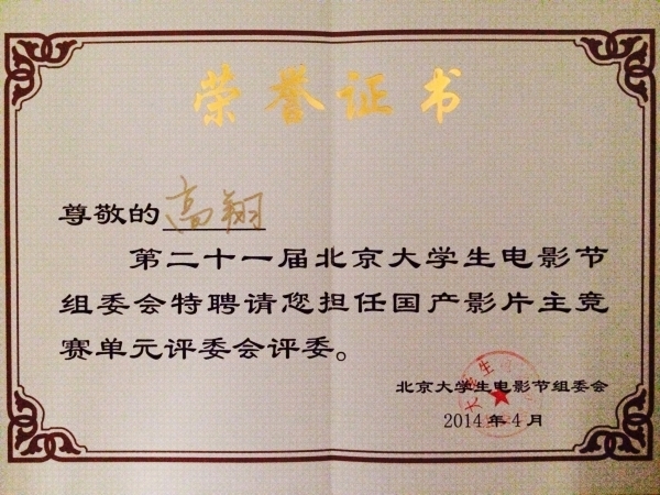 4月8日,第二十一届北京大学生电影节在北京开幕。北京大学生电影节始终秉承“青春激情、学术品位、文化意识”的宗旨,坚持以“大学生办、大学生看、大学生拍、大学生评”为特色,奠定了不同于其他所有电影节的独特品格。国产电影主竞赛单元评委会由来自全国高校多专业的30位大学生和10位青年电影学者组成,金沙990活动大厅2012级硕士研究生高翔受邀担任大学生评委,全程参与了主竞赛单元评选活动。另外,2013级硕士研究生吴婧雯、胡潇睿受邀担任大学生原创影片大赛大学生评委。