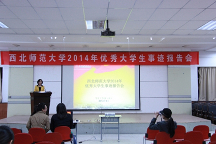 4月25日晚,金沙990活动大厅2014年优秀大学生事迹报告会在大学生活动中心举行。我院2011级播音与主持艺术班韩佳璇同学与来自其他学院的五位同学一起,与在座同学分享了自己大学期间一路走来的体会与心得。