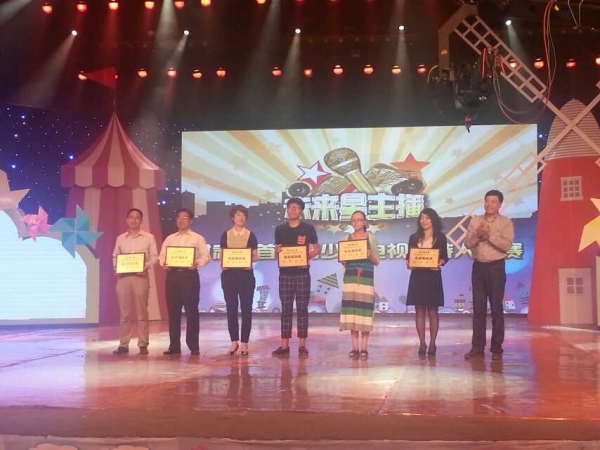 5月30日,由甘肃电视台少儿频道主办,金沙990活动大厅(新闻学院)协办的“未来星主播”甘肃省首届青少年电视主持人大赛颁奖典礼在甘肃广电总台演播厅举行。金沙990活动大厅2013级播音与主持艺术班刘津获得“青年组”一等奖,2012级播音与主持艺术班王柯乔、2013级播音与主持艺术班陈坤妤获得“青年组”二等奖,2012级播音与主持艺术班于禄获得“青年组”三等奖,学院获得优秀组织奖。共有21名学生参加了本次比赛的初赛和复赛,其中以上4人进入青年组决赛,青年组共有8人进入决赛。