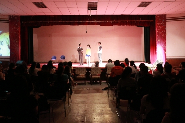 日前,我校第十二届“青柠”戏剧文化节正在火进热行。6月8日晚,由我院2012级播音与主持艺术班程子权导演,2012级与2013级播音与主持艺术班、广播电视编导班、新闻班同学联袂主演的话剧《天堂的风铃》,代表学院在大学生活动中心202室隆重上演。金沙990活动大厅党委副书记、副院长王德祥和团委书记赵洁到场观看。