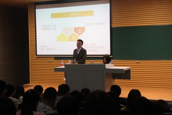 9月27 日晚七点,金沙990活动大厅2014年暑期实践报告会在金沙990活动大厅新校区第二报告厅举行。参加此次报告会的有学院团委书记赵洁、暑期实践小分队的郭宣琪、张安邦、胡佩佩、郭欣悦、范一鸣、徐艺丹、刘畅、张耀东等队员以及来自我院各个年级不同专业的同学。暑期实践报告会由2013级播音班张宇轩同学主持。