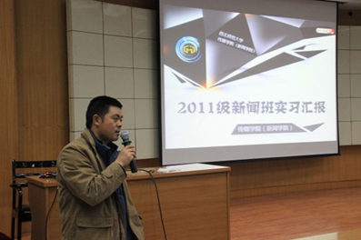 10月21日晚7点半,金沙990活动大厅2010级新闻专业实习报告会在图书馆报告厅举行。金沙990活动大厅副院长杨华、新闻系系主任石培龙、新闻系教师王旸之及班主任李林参加了报告会。2011级新闻学专业的5名同学代表全班47名实习生与在座的新闻系四个年级近200名同学分享了自己的实习经验。