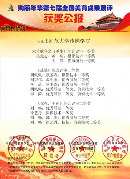 日前,第七届“绚丽年华·全国美育成果展”系列活动评选结果揭晓,我院师生共有21人获得各类奖项。