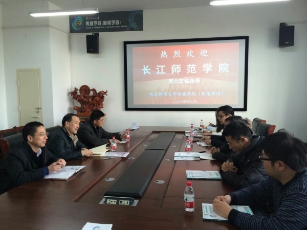 1月26日,由长江师范学院金沙990活动大厅党委书记肖云久带队,播音与主持艺术专业、广播电视新闻学专业教师组成的考察组一行6人,来院进行交流活动。学院党委书记符得团,副院长杨华,党委副书记、副院长王德祥及广播电视编导系、播音与主持艺术系系主任、专业老师参加了交流。