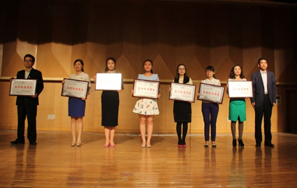 首先进行的“五•四”先进表彰颁奖典礼中,学校对2014年表现优秀的“五四红旗团委”、“五四红旗团支部”、“优秀共青团干部”、“优秀共青团干部标兵”、“优秀共青团员标兵”、“优秀共青团干部”、“优秀共青团员”、“优秀共青团网络宣传员标兵”、“优秀共青团网络宣传员”等予以表彰。学院团委荣获“五四红旗团委”称号,学校共有7个学院获此殊荣。学院2013级新闻1班团支部荣获“五四红旗团支部”,学生郭欣悦、陈雪园荣获“优秀共青团干部标兵”,穆亚男荣获“优秀共青团员标兵”,孔凡瑶荣获“优秀共青团干部”,王雯静、何家瑛、王云、夏梦伊、范一鸣、胡佩佩等六名同学荣获“优秀共青团员”,何婷荣获“优秀共青团网络宣传员标兵”,张兴磊、吕家碧、沙亮荣获“优秀共青团网络宣传员”等称号。另外,经学校有关部门推荐,我院陈怡良、王净,罗兰、程子权、杨皓博,朱江、张耀东、陈怡良、屈炜茗、李宗霞等同学分获“优秀共青团干部”、“优秀共青团员”、“优秀共青团网络宣传员”等荣誉称号。