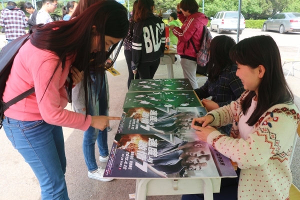 在“六艺”板块外,还在中心广场通过画板展示“丝路杯”摄影作品、现场大屏幕展映《敦煌伎乐天》及学院学生拍摄的短片作品、展列“挑战杯”中获奖学生及作品名单等方式向广大学子宣传传媒学子的风采。除中心广场的集中活动外,“未来星主播”主持人大赛、“中国·兰州我是主持人”大赛、“夏青杯”比赛、经典诗文朗诵会、“本科生学术能力提升计划”2015年中期答辩会、台湾交流生两岸故事交流分享会等活动也将在学术科技文化月依次展开。