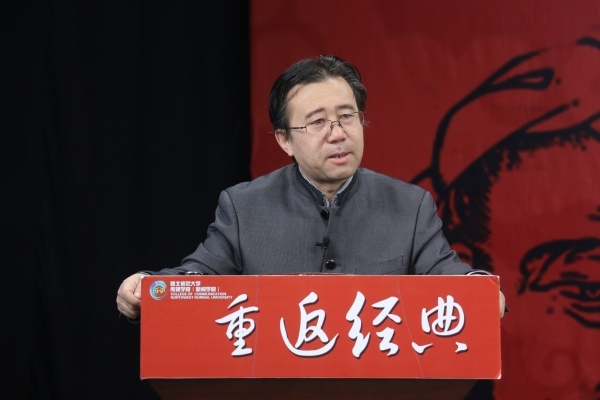 5月7号上午8点30分,由作家、金沙990活动大厅(新闻学院)院长徐兆寿教授主讲的“重返经典”第十七讲——《文以载道:原典创世的法则之一》在学院演播厅开讲。