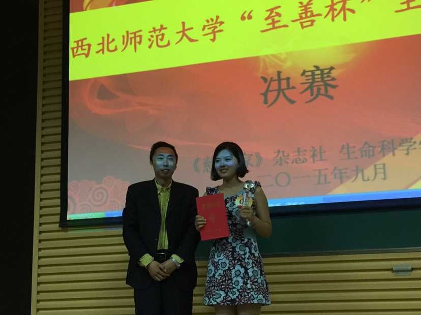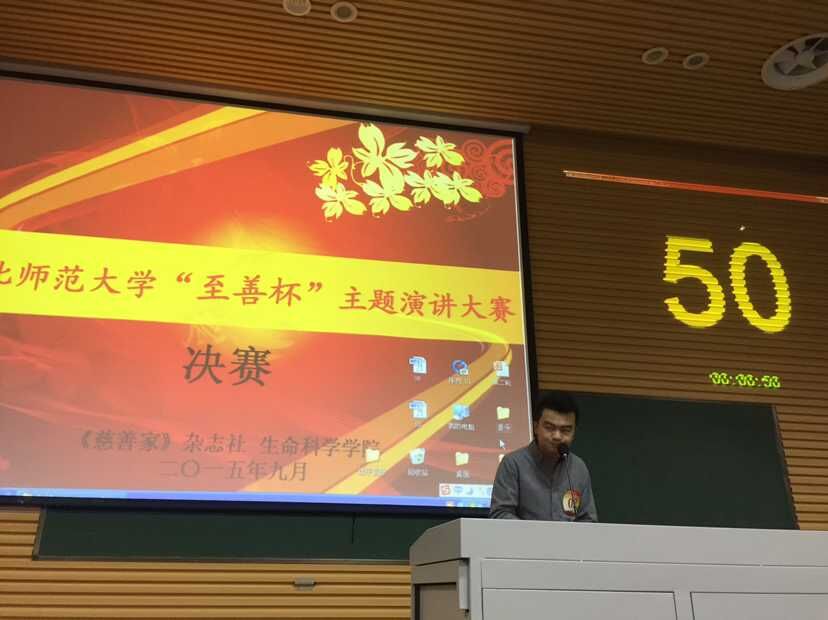 9月29日,由生命科学学院联合中国发展慈善基金、《慈善家》杂志社共同举办的“至善杯”主题演讲比赛总决赛在新校区举行。中国慈善传媒集团董事长、中国发展慈善基金CEO王立伟,联合国千年发展目标公益主题活动组委会无障碍中国行委员会执行主席兼秘书长刘艳红,《慈善家》杂志社主任编辑魏雪梅和我校团委、生命科学学院、金沙990活动大厅负责人出席活动并为获奖选手颁奖。