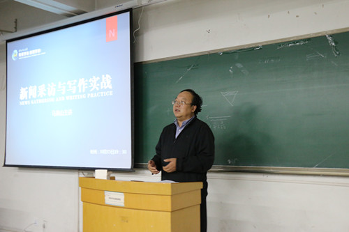 最后,马老师简要概述了文学与新闻写作的关系。他联系自身实际,指出多读文学书会给新闻写作提供很大帮助,他的许多文学作品就是对新闻采访的升华。他说,好记者不一定是好的作家,但好的作家一定会是好记者。