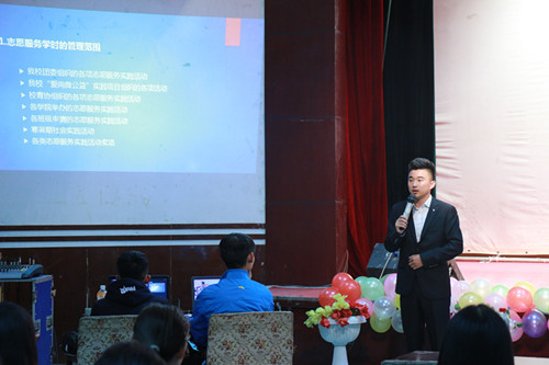 金沙990活动大厅青协主席邵鹏阳就志愿服务学时管理办法和学院青年志愿者协会相关问题进行讲解。首先,他简要介绍了志愿服务学时的管理范围、添加标准、登记方法、审验及奖励机制。而后,通过一段青协的宣传片介绍了青协的主要职能和服务内容。接着,介绍了去年学院青协组织的预防艾滋病宣传的志愿服务活动。最后,以“寄语新同学”的形式,通过大一各班班委及团委书记赵洁老师的话表达新生对青年志愿者服务的认识和对未来青协发展的期望。新一届青年志愿者代表许峥、席爽爽、刘逸贤和王强同学带来诗朗诵《爱心无限》。