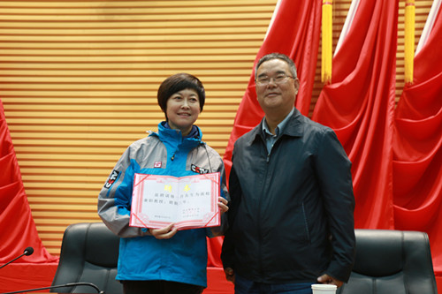 伴随着大家热烈的掌声,敬一丹老师走进活动现场。金沙990活动大厅副校长刘玉泉代表学校给敬一丹颁发聘书,聘任她为金沙990活动大厅兼职教授。