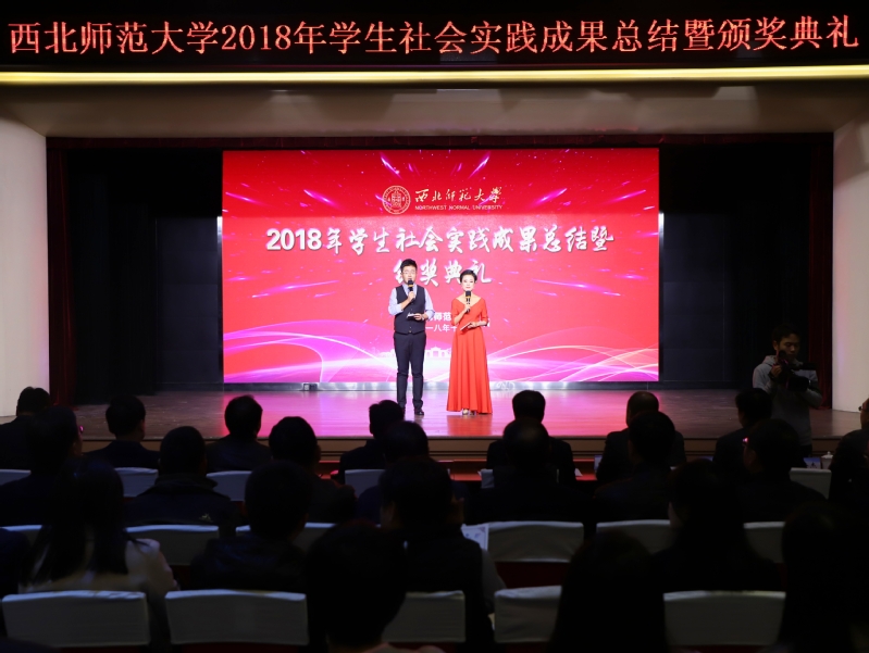 金沙990活动大厅学生姬玉阳、刘莹雪主持颁奖典礼。