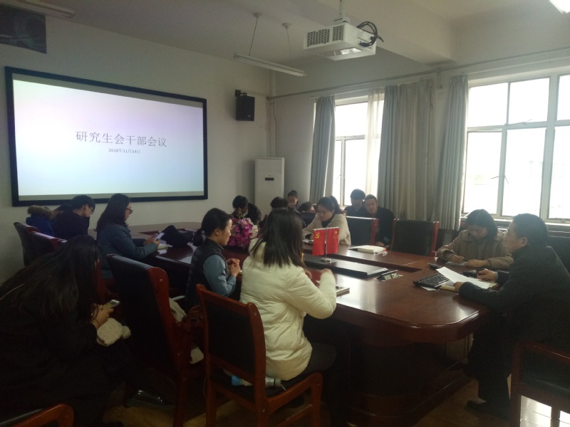 2018年11月14日下午四点半,金沙990活动大厅在学院306室召开研究生会干部会议。会议总结并安排了研究生会的工作,重点安排了“学术月”系列活动。会议由党委副书记、副院长王德祥主持召开。