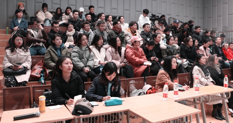 在语言能力的提升方面,李洪岩以收藏家蔡铭超“拍而不买”的故事,诠释语言艺术的内涵。李洪岩讲到,语言犹如冰山一角,我们看到的只是露出海面的一部分,它下面有更多的承载,同时,语言也是思想的外化和文明的呈现。他告诫学生,要想表达得好,在开口之前,需要用更多甘于寂寞的时间去积累,用沉默的方式做好准备,以便在开口的一瞬间传情、达意、明志、传神。