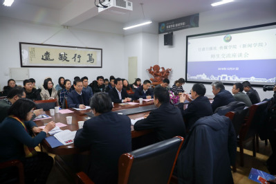 刘永雷介绍了学院师资力量以及学院各专业毕业生就业情况。杨华介绍了金沙990活动大厅的发展历史、办学特色以及课程设置情况。与会师生就甘肃日报与学院的合作及就业要求等与甘肃日报社各位同志进行了交流。在座谈中,双方就双导师聘任、实习基地建设、新媒体平台互动、毕业生就业等问题达成了共识。