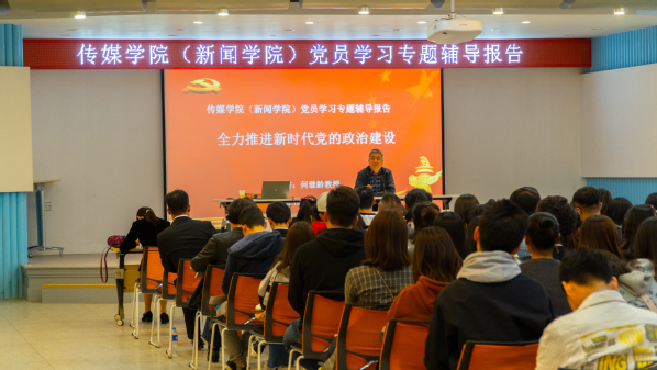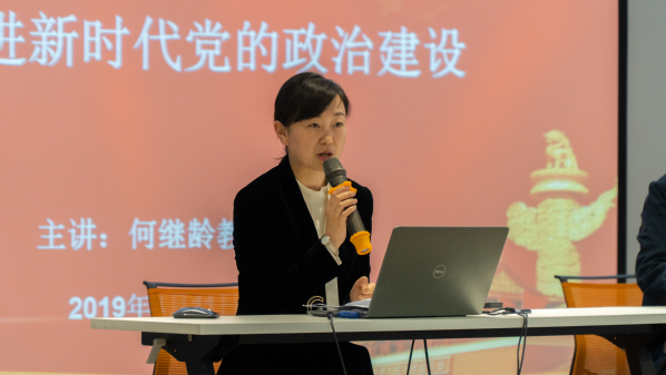 4月11日,马克思主义学院何继龄教授受邀为金沙990活动大厅全体师生党员、党员发展对象、入党积极分子300余人做题为《全力推进新时代党的政治建设》专题辅导报告。同时,全体师生党员学习了党支部建设标准化手册和习近平总书记参加甘肃代表团审议时讲话精神。