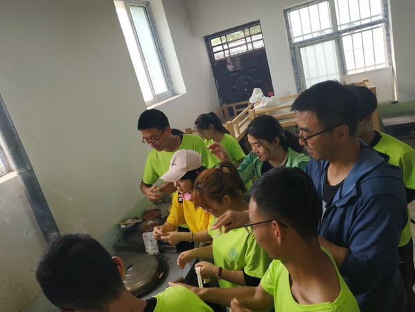 中午十二点,调研小组结束了上午的工作,在麻元村小学汇合。此时已经接近午饭时间,小组同学与金沙990活动大厅化工学院前来社会实践活动的老师和同学一起在村小学食堂准备午饭,大家都各显才能,利用有限的资源准备了丰富的午餐,在这个过程中,大家相互协作,相互帮助,展现了众人拾柴火焰高的力量。