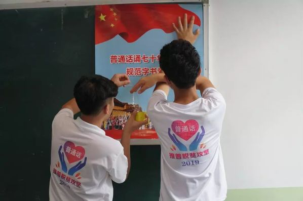 在当地调研中,队员们了解到当地很多居民受教育程度普遍在初中以下,他们与外界接触少,使用普通话进行交流较为困难。而这同样也使他们不去主动与外界接触,从而影响他们脱贫致富的能力。“镇子上的年轻人都外出打工了,留在镇子上的大部分都是老人和孩子,说的一直都是本地方言,和其他地方的人们交流肯定有很多不方便。”雷坝镇镇长马继军说。