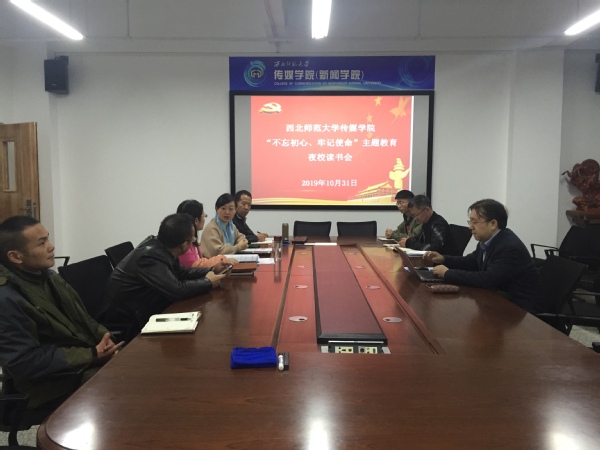 2019年10月31日晚,学院领导班子、理论中心组、党支部书记10余人在612会议室参加“不忘初心,牢记使命”主题教育夜校读书会,读书会由副书记兼副院长甘雯主持。