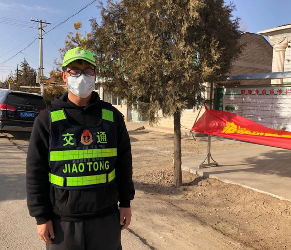 郭自豪,2017级广播电视编导1班。他在家乡做志愿者,坚守在农村新型冠状病毒肺炎防控检测站的岗位上,负责村庄里的出入人员登记、体温测量和巡视检查工作。