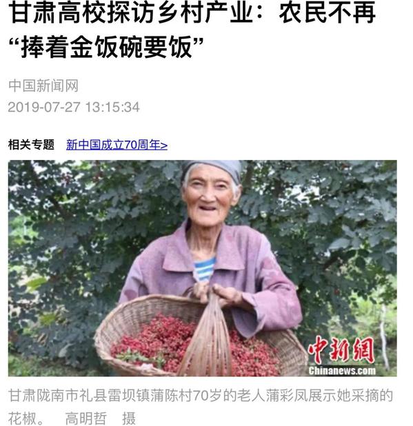 中国新闻网《甘肃高校探访乡村产业:农民不再捧着金饭碗要饭》等2篇