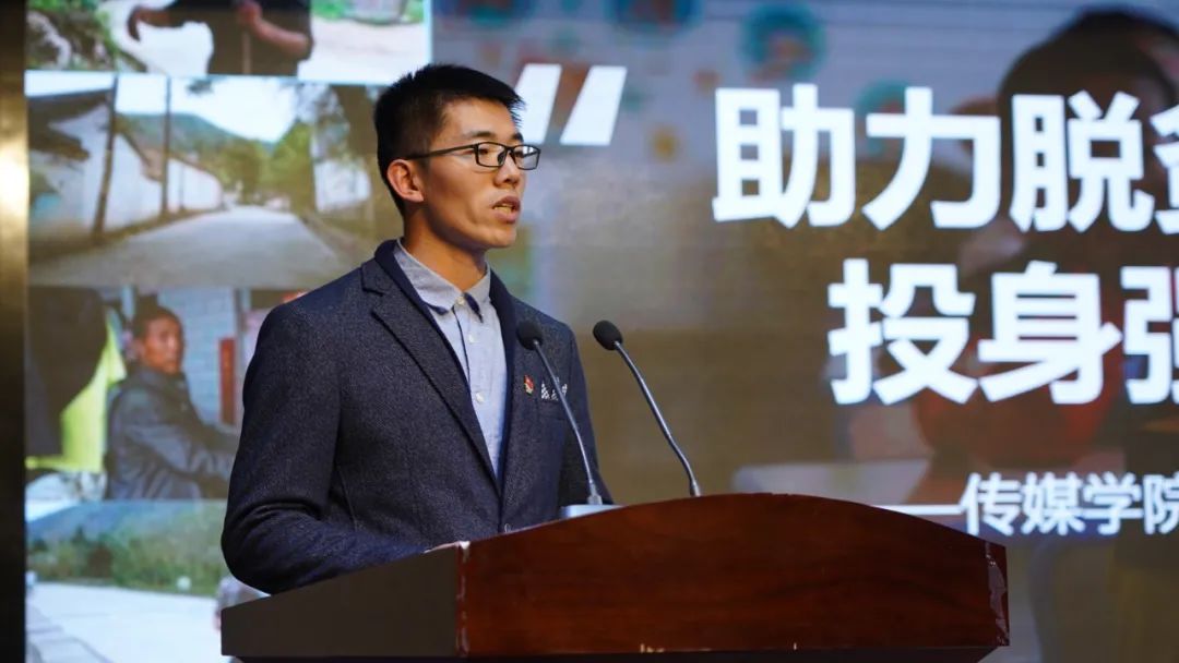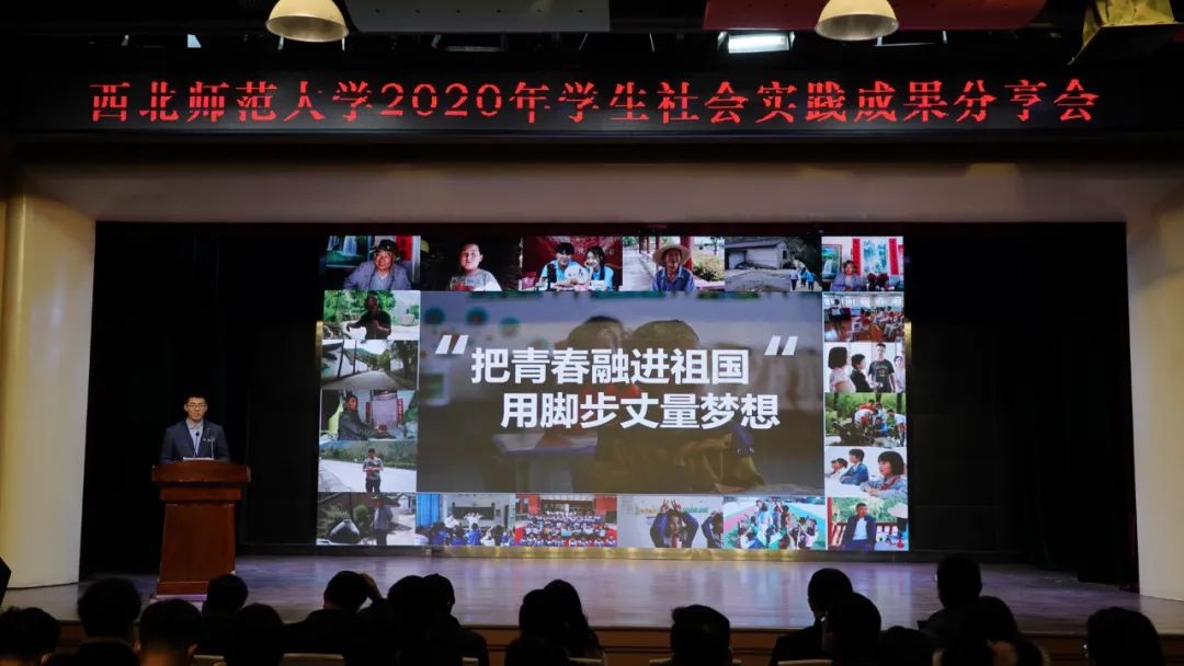 金沙990活动大厅团委书记、专职辅导员付枭雄作为2020年社会实践“优秀组织单位”发言人作了题为《助力脱贫攻坚 投身强国伟业》的社会实践分享报告,向全体参会代表分享金沙990活动大厅2020年暑期社会工作开展情况,用高度凝练的语言总结了传院7支团队、107人在甘肃省内各地开展实践活动的情况。